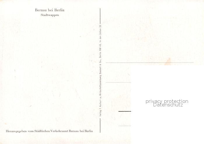 73854510 Bernau Berlin Mark Stadtwappen postalisch nicht gelaufen Erhaltung siehe scans [WerneD78] KatCode: 11110012060020