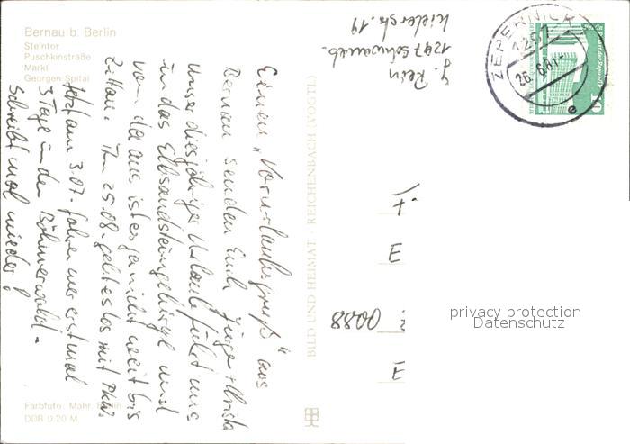 72136101 alte Postkarte Bernau Berlin Steintor Puschkinstrasse Markt Georgen Spital postalisch gelaufen KatCode: 11110012060020