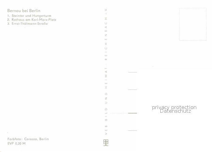 72742934 Bernau Berlin Steintor und Hungerturm Rathaus Karl-Marx-Platz Ernst-Thaelmann-Strasse postalisch nicht gelaufen Erhaltung siehe scans [LiesaD40] KatCode: 11110012060020
