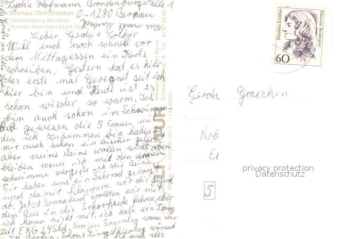 73747650 alte Postkarte Bernau Berlin Waldsiedlung Wandlitz postalisch gelaufen Erhaltung siehe scans [WerneD78] KatCode: 11110012060020