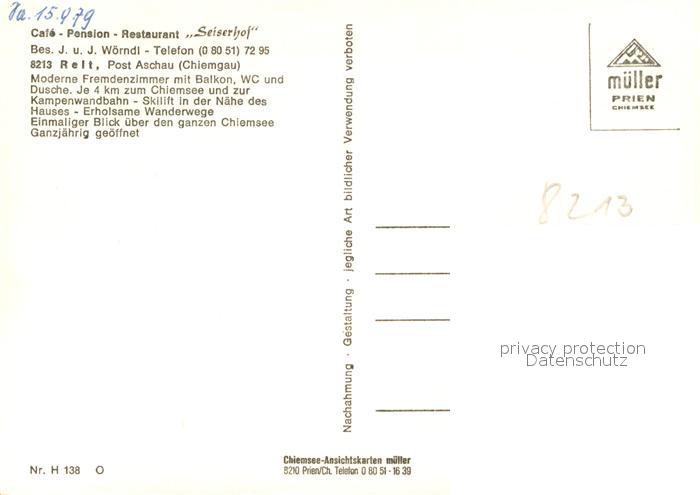 73688604 Bernau Chiemsee Cafe Pension Restaurant Seiserhof Herreninsel Fraueninsel Hochgern Kampenwand postalisch nicht gelaufen Erhaltung siehe scans [WerneD78] KatCode: 11110009187118