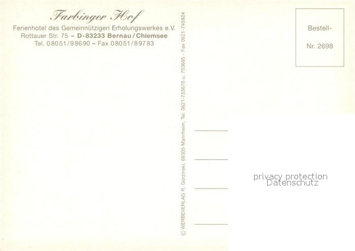 73659370 Bernau Chiemsee Farbinger Hof Ferienhotel des Gemeinnuetzigen Erholungswerkes e.V. Fliegeraufnahme postalisch nicht gelaufen Erhaltung siehe scans [FriedD77] KatCode: 11110009187118