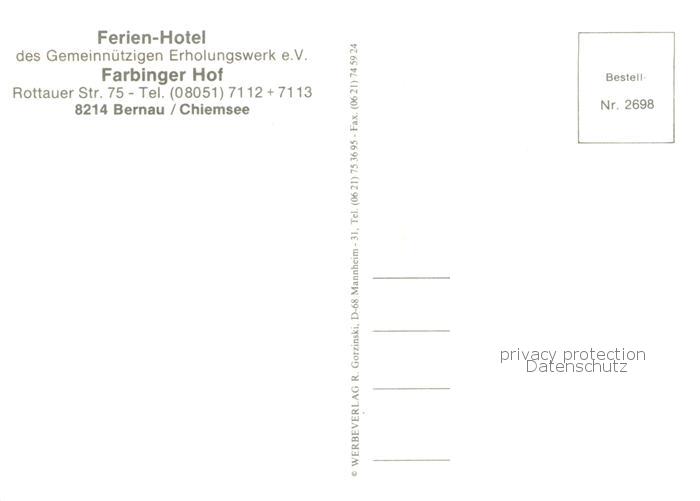 73838024 Bernau Chiemsee Farbinger Hof Luftbild Panorama postalisch nicht gelaufen Erhaltung siehe scans [FriedD77] KatCode: 11110009187118