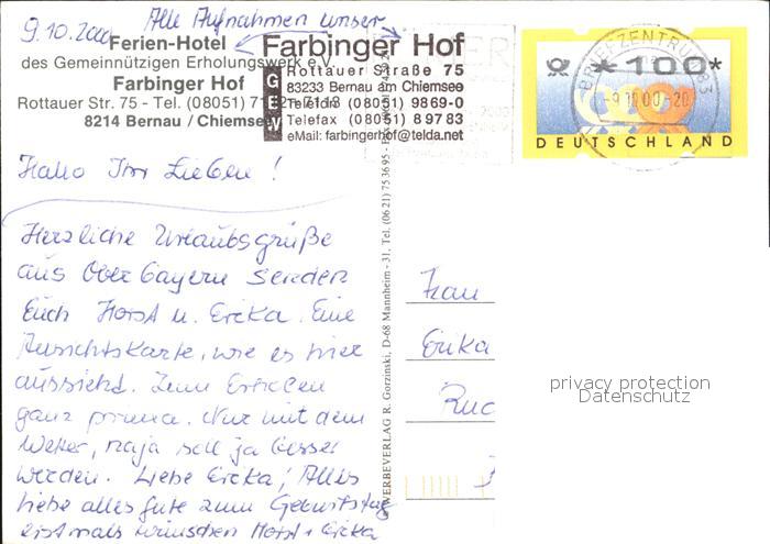 72456242 alte Postkarte Bernau Chiemsee Farbinger Hof Panorama postalisch gelaufen Erhaltung siehe scans KatCode: 11110009187118
