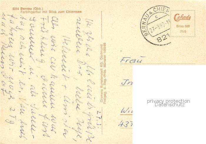 73076884 alte Postkarte Bernau Chiemsee Farbingerhof Chiemsee postalisch gelaufen Erhaltung siehe scans [KathaD81] KatCode: 11110009187118