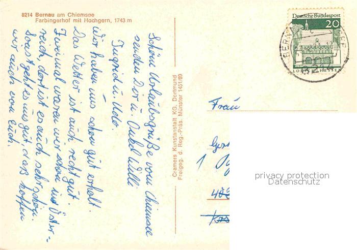 72626437 alte Postkarte Bernau Chiemsee Farbingerhof mit Hochgern Chiemgauer Alpen Fliegeraufnahme postalisch gelaufen Erhaltung siehe scans [FriedD77] KatCode: 11110009187118
