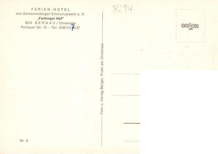 73893520 Bernau Chiemsee Ferienhotel Farbinger Hof Gastraeume Hallenbad Zimmer Panorama postalisch nicht gelaufen Erhaltung siehe scans [WerneD78] KatCode: 11110009187118