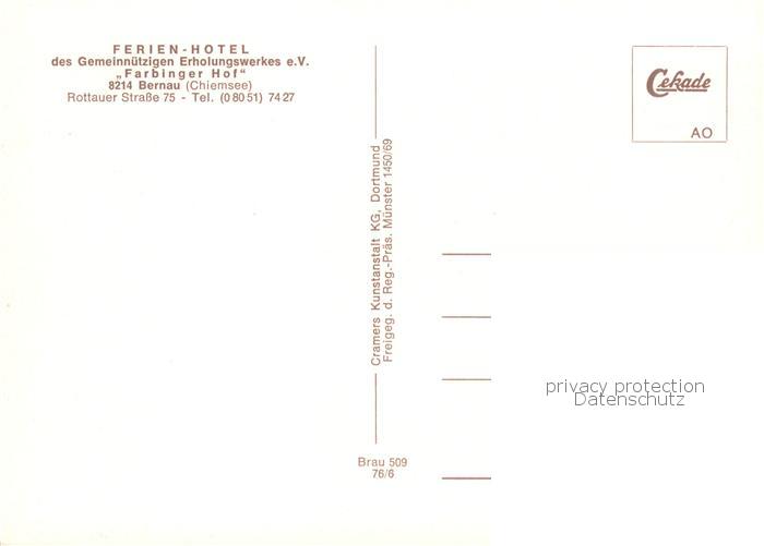 73858536 Bernau Chiemsee Ferienhotel Farbinger Hof postalisch nicht gelaufen Fliegeraufnahme Erhaltung siehe scans [FriedD77] KatCode: 11110009187118