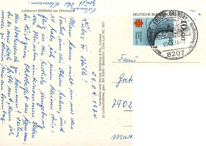 73878955 alte Postkarte Bernau Chiemsee Fliegeraufnahme postalisch gelaufen Erhaltung siehe scans [WerneD78] KatCode: 11110009187118