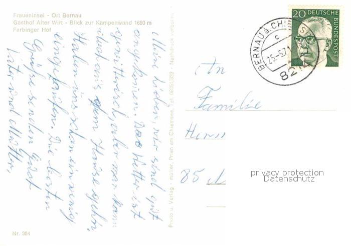 72772471 alte Postkarte Bernau Chiemsee Gasthof Alter Wirt Kampenwand Farbinger Hof postalisch gelaufen Erhaltung siehe scans [WerneD78] KatCode: 11110009187118