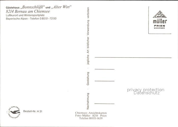 72307063 Bernau Chiemsee Gasthof Alterwirt und Bonnschloessl postalisch nicht gelaufen Erhaltung siehe scans KatCode: 11110009187118