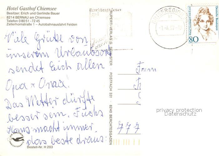 73323277 alte Postkarte Bernau Chiemsee Gasthof Chiemsee Winter am Chiemsee Chiemgauer Alpen postalisch gelaufen Erhaltung siehe scans [FriedD77] KatCode: 11110009187118