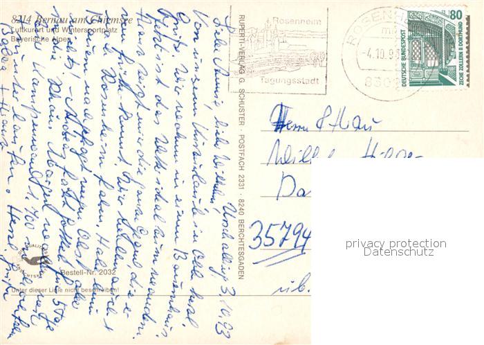 73199014 alte Postkarte Bernau Chiemsee Hochgern Farbinger Hof postalisch gelaufen Erhaltung siehe scans [NatalD47] KatCode: 11110009187118