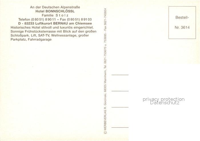 73182576 Bernau Chiemsee Hotel Bonnschloessl Historisches Hotel postalisch nicht gelaufen Erhaltung siehe scans [FriedD77] KatCode: 11110009187118