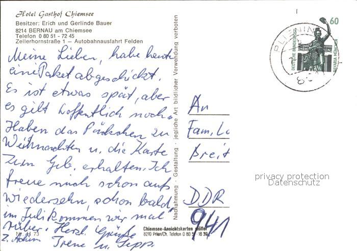 72032525 alte Postkarte Bernau Chiemsee Hotel Gasthof Chiemsee Kampenwand Hochgern postalisch gelaufen Erhaltung siehe scans KatCode: 11110009187118
