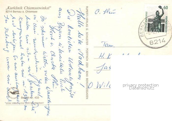 73123387 alte Postkarte Bernau Chiemsee Kurklinik Chiemseewinkel postalisch gelaufen Erhaltung siehe scans [KathaD81] KatCode: 11110009187118