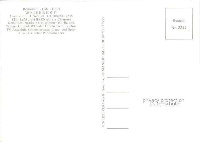 72285881 Bernau Chiemsee Restaurant Cafe Hotel Seiserhof Luftkurort Alpenblick postalisch nicht gelaufen Erhaltung siehe scans KatCode: 11110009187118