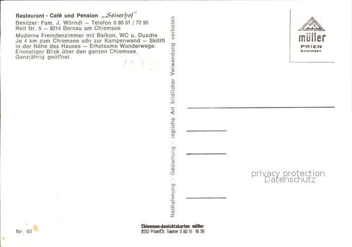 72279878 Bernau Chiemsee Restaurant Cafe Pension Seiserhof Kampenwand Gipfelkreuz Schafe Alpenflora postalisch nicht gelaufen Erhaltung siehe scans KatCode: 11110009187118