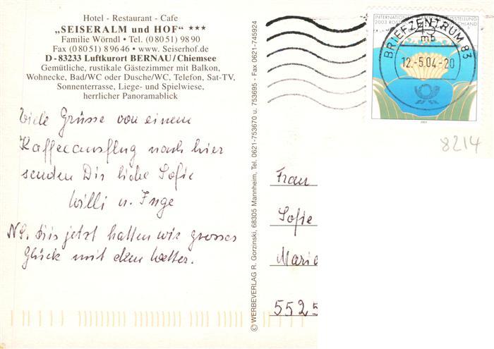 73897475 alte Postkarte Bernau Chiemsee Seiseralm und Hof Hotel Restaurant Cafe postalisch gelaufen Erhaltung siehe scans [FriedD77] KatCode: 11110009187118