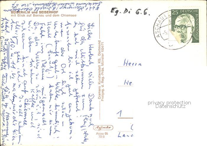 72243366 alte Postkarte Bernau Chiemsee Seiseralm postalisch gelaufen Erhaltung siehe scans KatCode: 11110009187118