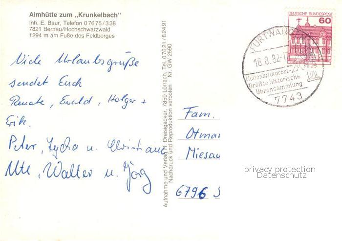72935324 alte Postkarte Bernau Schwarzwald Almh?tte zum Krunkelbach Feldberg postalisch gelaufen Erhaltung siehe scans [LiesaD40] KatCode: 11110008337013