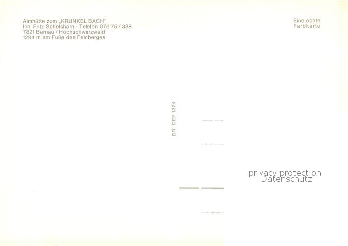 73081766 Bernau Schwarzwald Almhuette zum Krunkel Bach Kuehe postalisch nicht gelaufen Erhaltung siehe scans [LiesaD40] KatCode: 11110008337013