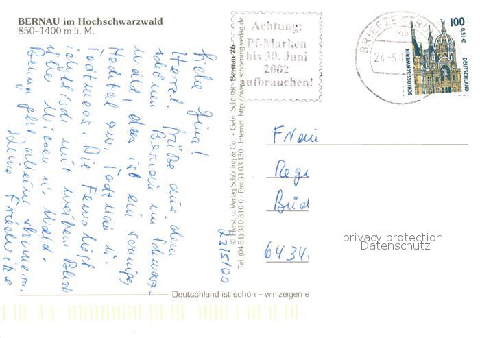 73596830 alte Postkarte Bernau Schwarzwald Bernau Dorf Innerlehen Oberlehen Hans Thoma Geburtshaus Resenhof Kurhaus Kaiserberg Im Kurpark postalisch gelaufen Erhaltung siehe scans [WerneD78] KatCode: 11110008337013