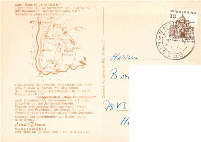 73901056 alte Postkarte Bernau Schwarzwald Cafe Pension Hofeck Hans Thoma Stube postalisch gelaufen Erhaltung siehe scans [WerneD78] KatCode: 11110008337013