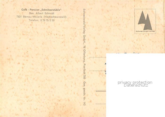 73338811 Bernau Schwarzwald Cafe Pension Schnitzerstueble postalisch nicht gelaufen Erhaltung siehe scans [WerneD78] KatCode: 11110008337013