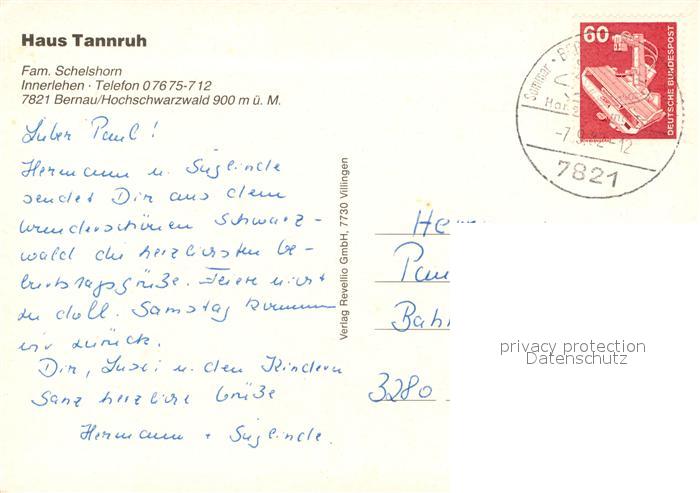 73323590 alte Postkarte Bernau Schwarzwald Gaestehaus Pension Ferienwohnungen Haus Tannruh postalisch gelaufen Erhaltung siehe scans [FriedD77] KatCode: 11110008337013
