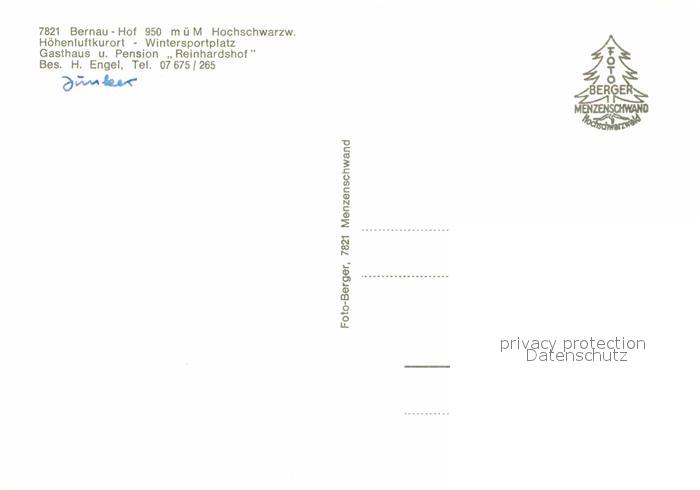 72899529 Bernau Schwarzwald Gasthaus Pension Reinhardshof Winterlandschaft Schwarzwald postalisch nicht gelaufen Erhaltung siehe scans [FriedD77] KatCode: 11110008337013
