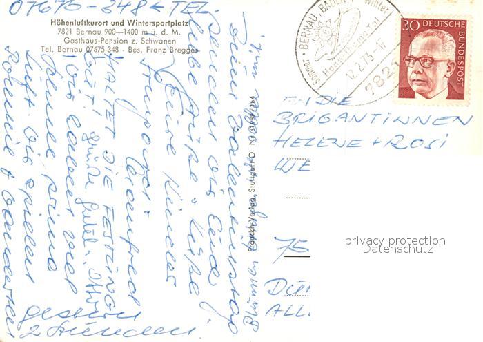 73282294 alte Postkarte Bernau Schwarzwald Gasthaus Pension zum Schwanen postalisch gelaufen Erhaltung siehe scans [LiesaD40] KatCode: 11110008337013