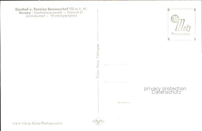 41786268 Bernau Schwarzwald Gasthof Pension Bernauerhof postalisch nicht gelaufen Erhaltung siehe scans Alte Ansichtskarte Postkarte hz_F Katcode 11110008337013