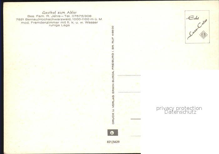 72417550 Bernau Schwarzwald Gasthof zum Adler postalisch nicht gelaufen Erhaltung siehe scans KatCode: 11110008337013