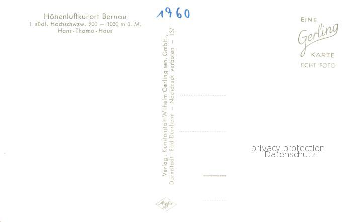 73763507 Bernau Schwarzwald Hans Thoma Haus postalisch nicht gelaufen Erhaltung siehe scans [FriedD77] KatCode: 11110008337013