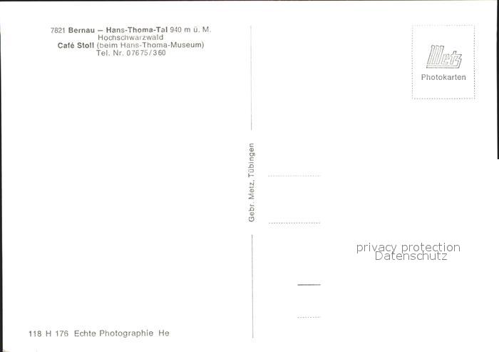 41759788 Bernau Schwarzwald Hans Thoma Tal Cafe Stoll postalisch nicht gelaufen Erhaltung siehe scans KatCode: 11110008337013