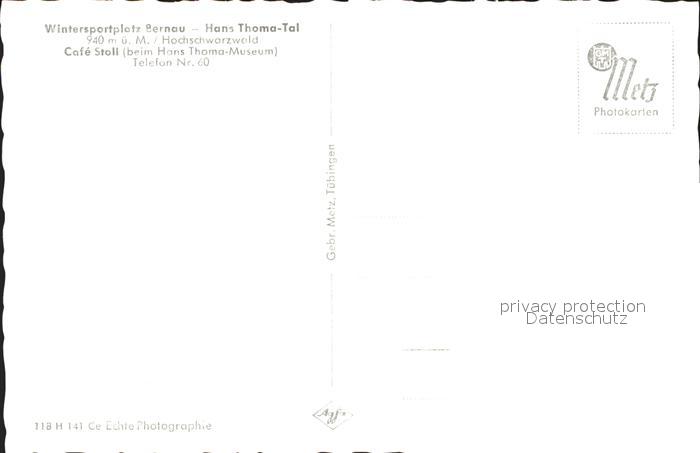 41759289 Bernau Schwarzwald Hans Thoma Tal Cafe Stoll postalisch nicht gelaufen Erhaltung siehe scans KatCode: 11110008337013