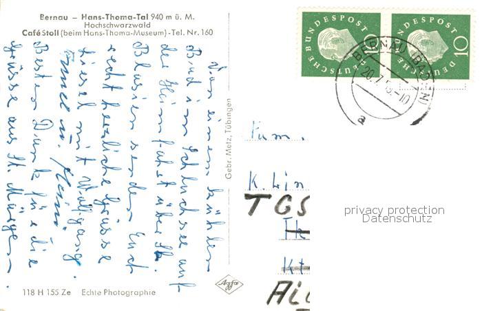 73550753 alte Postkarte Bernau Schwarzwald Hans Thoma Tal Cafe Stoll postalisch gelaufen Erhaltung siehe scans [WerneD78] KatCode: 11110008337013