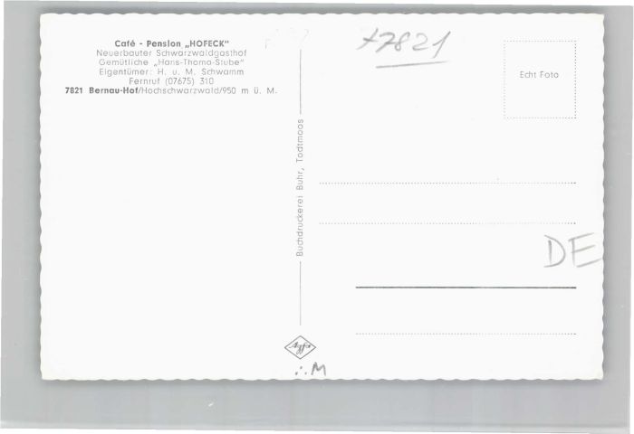 40734718 Bernau Schwarzwald Hof Cafe Pension Hofeck postalisch nicht gelaufen Alte Ansichtskarte Postkarte Katcode 11110008337013