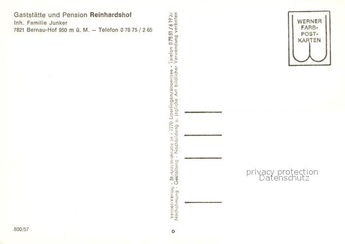 72976140 Bernau Schwarzwald Hof Restaurant Pension Reinhardshof postalisch nicht gelaufen Erhaltung siehe scans [LiesaD40] KatCode: 11110008337013
