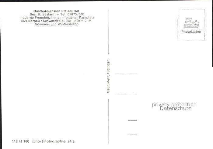 41759791 Bernau Schwarzwald Hotel Pension Pfaelzer Hof postalisch nicht gelaufen Erhaltung siehe scans KatCode: 11110008337013