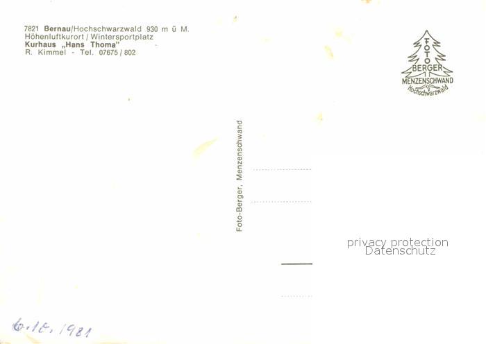 72618482 Bernau Schwarzwald Kurhaus Hans Thoma postalisch nicht gelaufen Erhaltung siehe scans [FriedD77] KatCode: 11110008337013