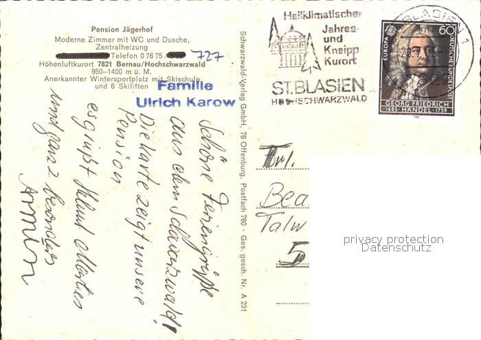 72333793 alte Postkarte Bernau Schwarzwald Pension Jaegerhof postalisch gelaufen Erhaltung siehe scans KatCode: 11110008337013