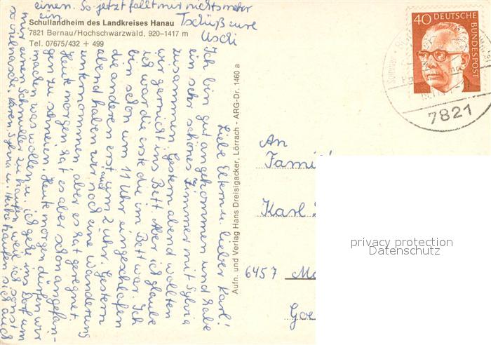 73649726 alte Postkarte Bernau Schwarzwald Schullandheim des Landkreises Hanau postalisch gelaufen Erhaltung siehe scans [WerneD78] KatCode: 11110008337013