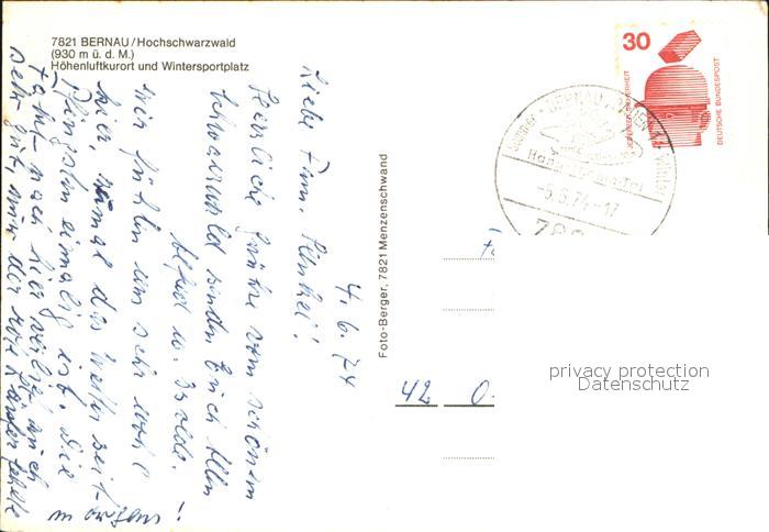 72527278 alte Postkarte Bernau Schwarzwald Teilansicht Panorama postalisch gelaufen Erhaltung siehe scans KatCode: 11110008337013