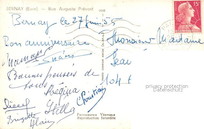 13537944 carte postale Bernay Rue Auguste Prevost postalisch gelaufen Erhaltung siehe scans [WerneD78] KatCode: 11170027227056