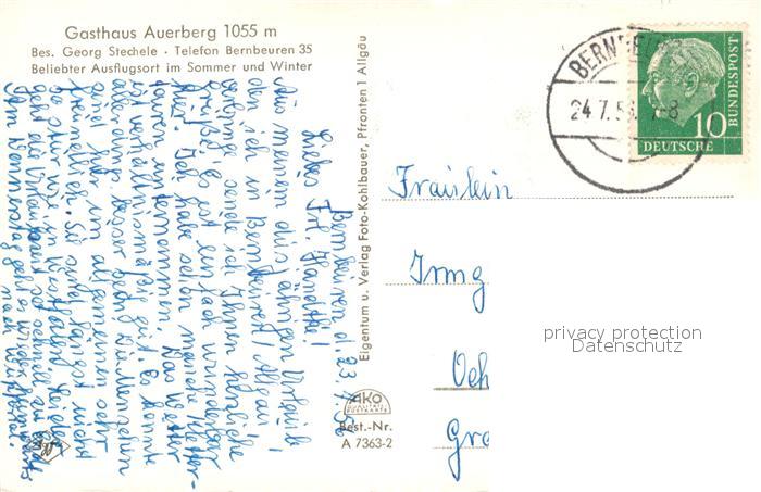 73369537 alte Postkarte Bernbeuren Gasthaus Auerberg Bergketten postalisch gelaufen Erhaltung siehe scans [KathaD81] KatCode: 11110009190114