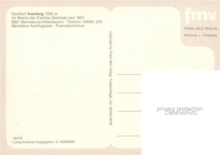 73125143 Bernbeuren Gasthof Auerberg Fliegeraufnahme postalisch nicht gelaufen Erhaltung siehe scans [PaolaD17] KatCode: 11110009190114
