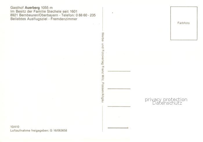 73203938 Bernbeuren Gasthof Auerberg Fliegeraufnahme postalisch nicht gelaufen Erhaltung siehe scans [PaolaD17] KatCode: 11110009190114