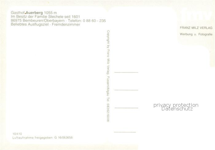 73765929 Bernbeuren Gasthof Auerberg mit Kirche Fliegeraufnahme postalisch nicht gelaufen Erhaltung siehe scans [FriedD77] KatCode: 11110009190114